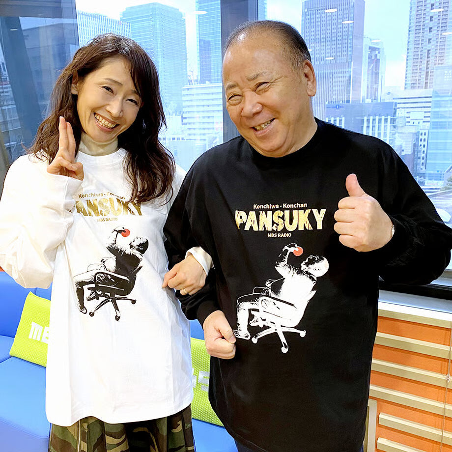 MBSラジオで劇烈なオンエアーを続ける放送界の異端児、近藤光史の世界をリアルに表現!いま巷で話題沸騰のアイテム! その名も「こんちわコンちゃん パンスキーTシャツ」!