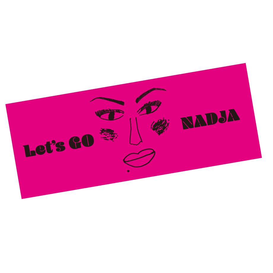 番組ノベルティでもお馴染みナジャ自筆似顔絵のマフラータオルが登場! くるっと顔に巻けばあっという間にナジャに変身?!