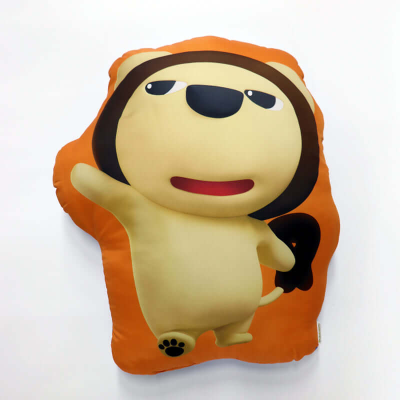 映画「たべっ子どうぶつ THE MOVIE」と大阪・毎日放送のキャラクター「らいよんチャン」がコラボしたクッション。「らいおんくん」と「らいよんチャン」がおもてとうらになってます!