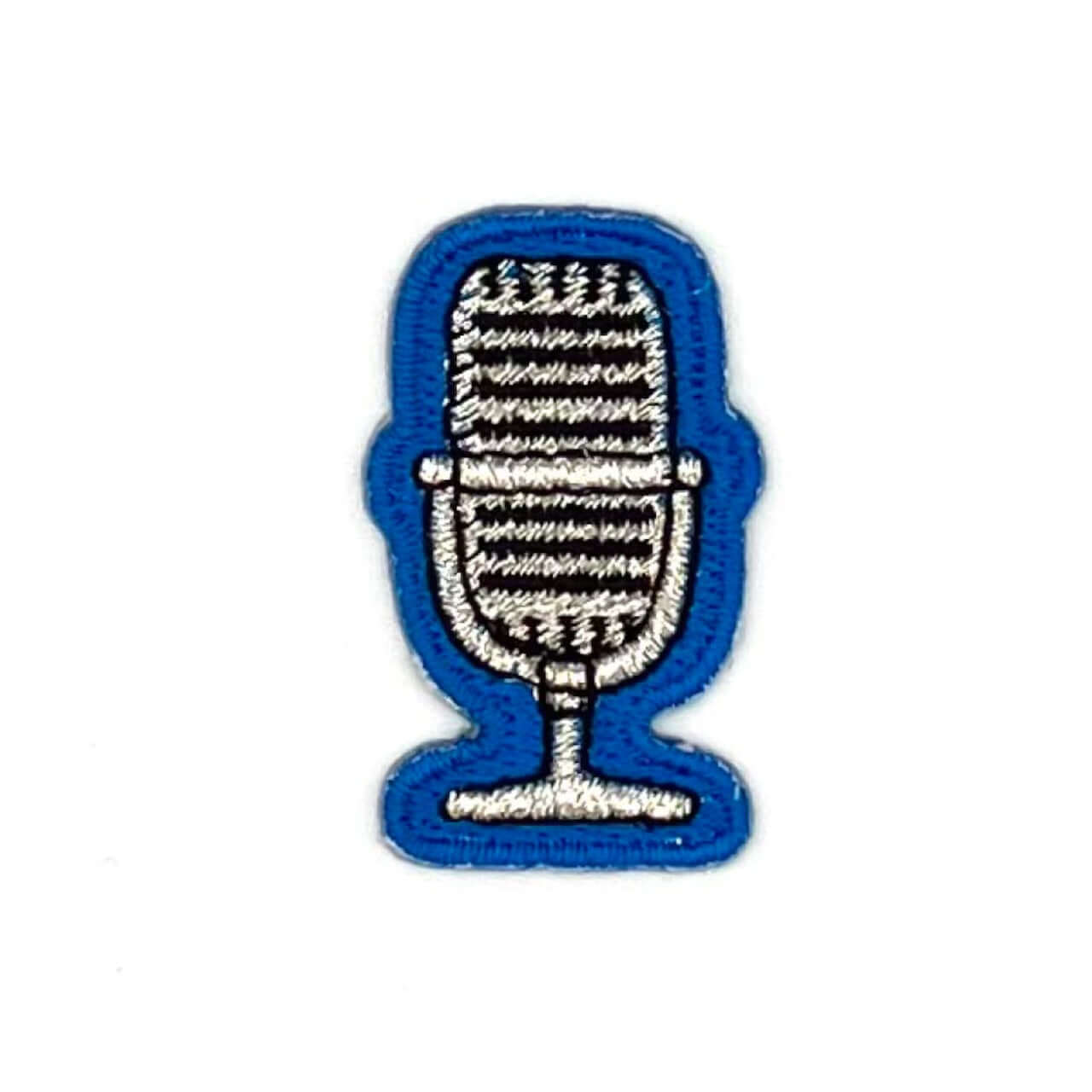 ヤングタウン刺繍ワッペン(マイク)※アイロンワッペン・ステッカー両用タイプ(ブルー)